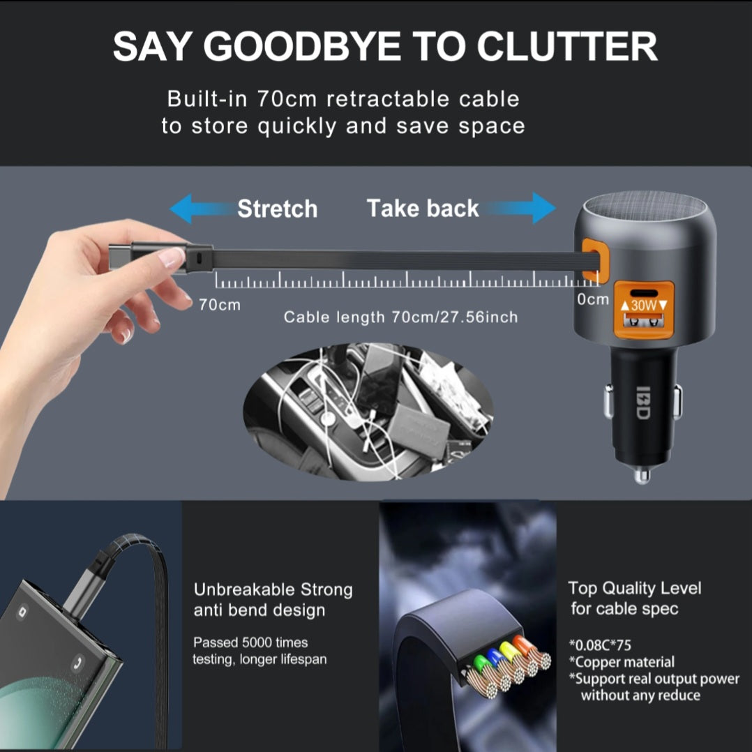 Ditch the mess of multiple cords. This lightweight, space-saving cable fits easily into your bag, pocket, or glove box for on-the-go convenience.